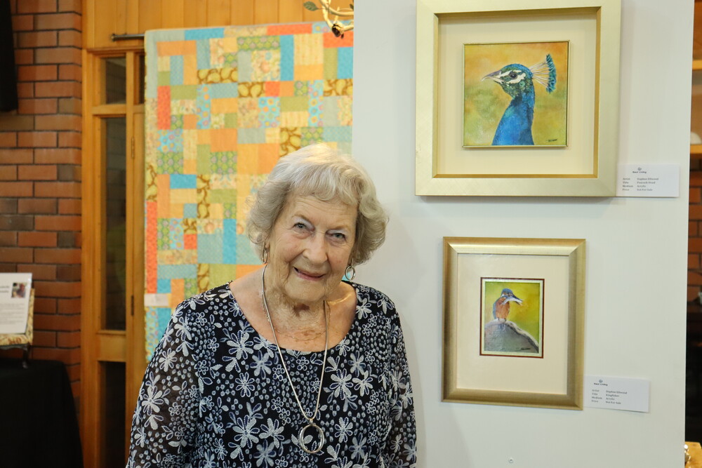 Daphne’s love for art began at school, encouraged by her mother, whose own paintings from 1918 still inspire her. After a long career in dressmaking, it wasn’t until she was 73 that she picked up a paintbrush again—this time at the encouragement of a friend in Snells Beach. She still had her school watercolour kit, and joined an art class led by Brian Millard, who reignited her artistic spark.