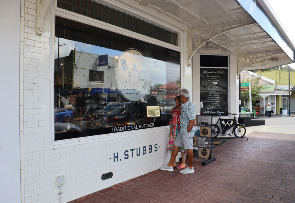 Tom and Jill are standing in front of Warkworth Butchery, another favourite among residents. The main street of the town also features two pharmacies, a bank, and two supermarkets, with additional health services just a short stroll away. There are also several op shops and a variety of second-hand shops to explore.