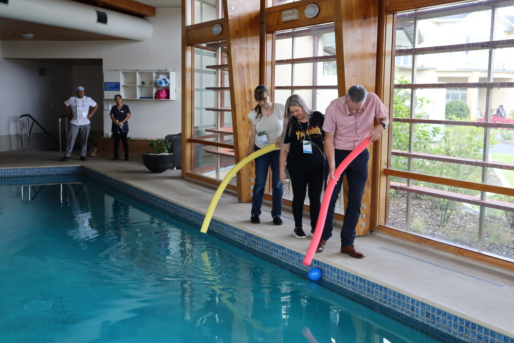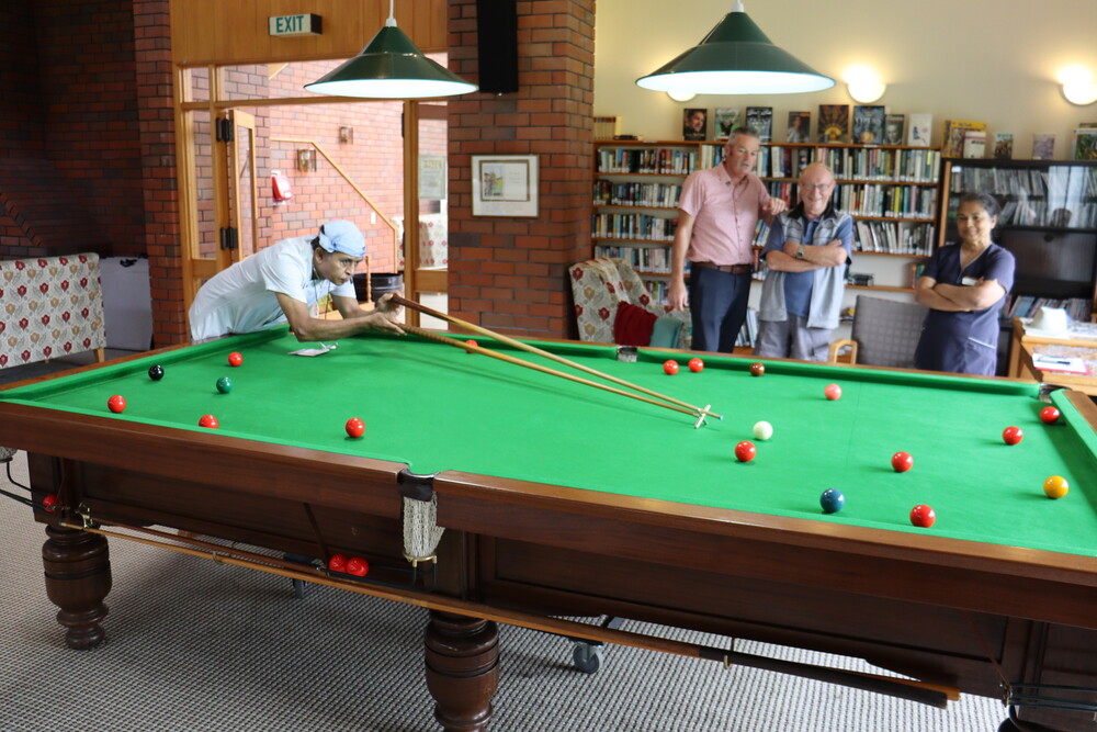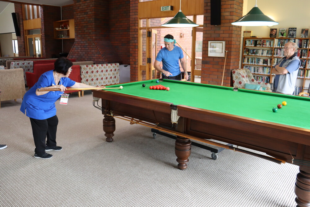 The Village Activities Coordinator, Kirsten, designed the teams mixing staff members that don’t normally work together. Three of the challenges were around the village and the other four were inside, starting with an exhilarating game of snooker where the players had to pot as many balls as possible in under 20 minutes. Pakuranga Park’s Village Manager, Christian Pulley, had a great deal of fun with this exercise and he was very good at helping the colleagues who didn’t have much experience with this game.