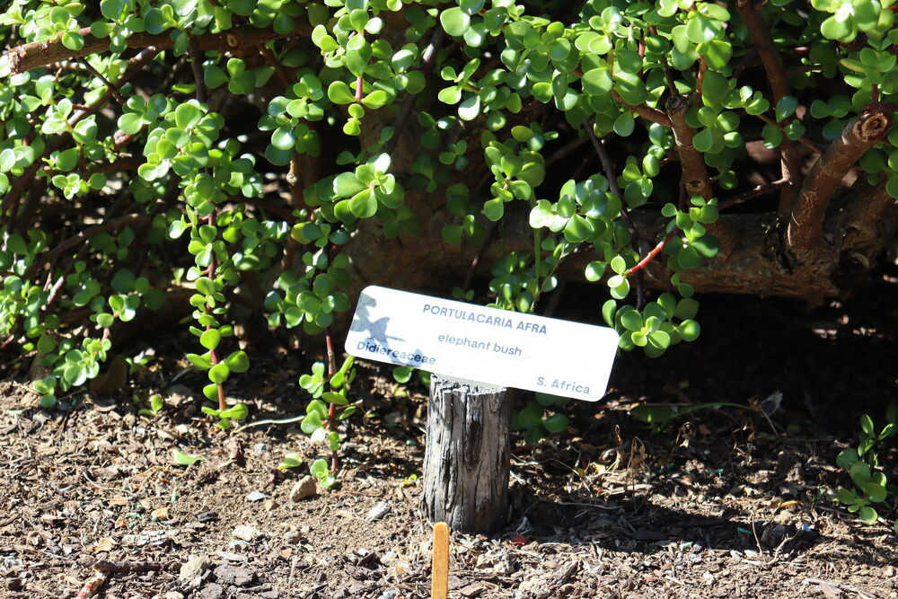 We continue our journey around the world with a stop in South Africa, where we meet the Portulacaria afra, or elephant bush. As the name suggests, it is eaten by wild elephants, comprising 80% of their diet. Additionally, this plant serves as a carbon sponge, absorbing high levels of carbon from the air.