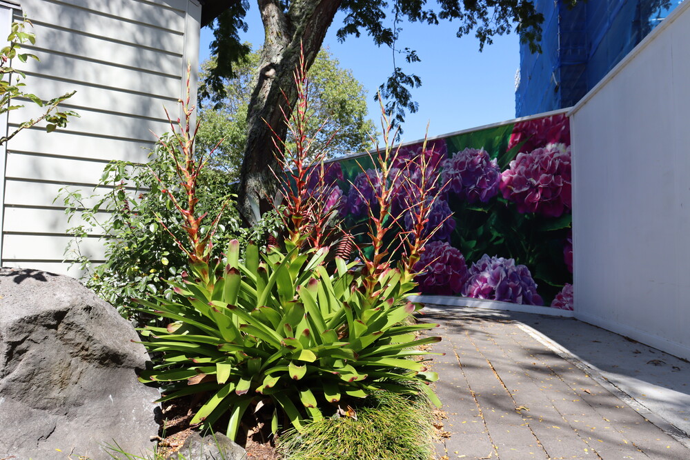 Also from Brazil, in Remuera Gardens, we can find the Vriesea philippo-coburgii, or flaming sword plant. This bromeliad produces a single inflorescence that consists of bright red bracts and yellow flowers. This gorgeous plant can be found outside Beattie Lodge, the central hub of the village, where amenities such as the gym, hair salon, library, lounges, community center, and the 45-tiered seat professional cinema are located.