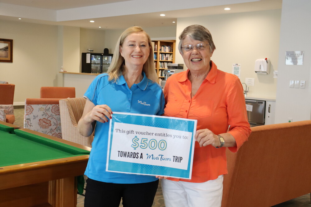 Elva from Warkworth Oaks won the competition’s Grand Prize, a $500 discount voucher that will allow her to embark on an exciting journey with this exceptional New Zealand travel company. Founded in 2008, MoaTours offers small group tours for mature travellers, with all inclusive costs. Elva was thinking of investing her $500 discount voucher towards a 5-day Great Barrier Island Escape with her husband.