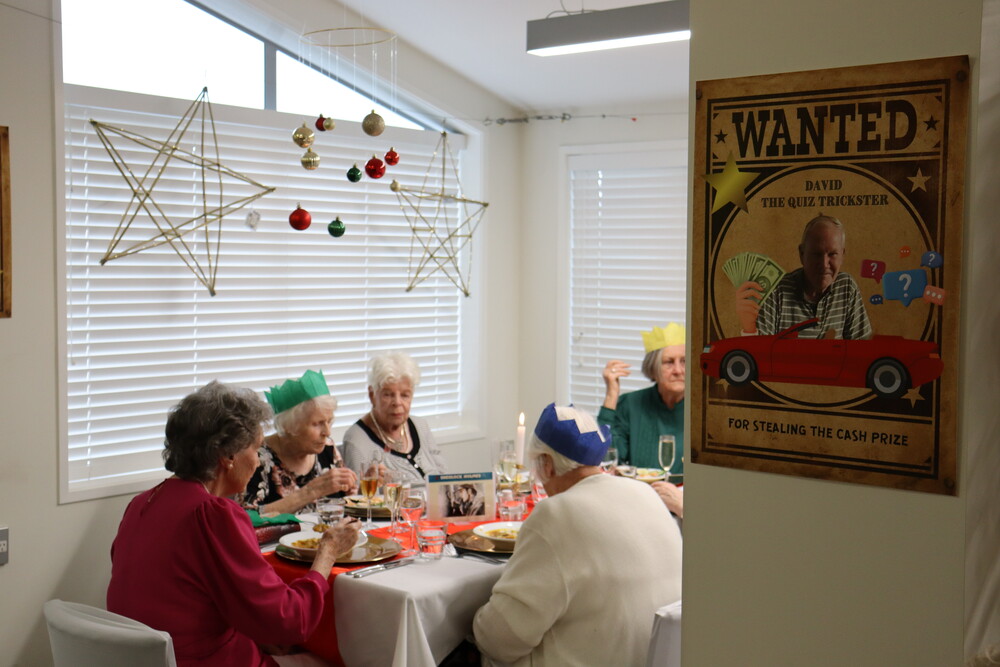 A couple of years ago, Epsom Village decided to shake things up by reinventing the classic Christmas party. In 2022 the Activities Coordinators organised a dinner inspired in the Hollywood Oscars, and the residents enjoyed the evening so much that they decided to repeat the concept for 2023. This time the theme for the night was a "Mystery Christmas", with an evening full of clues to unlock, mysteries to solve and fictional criminals to arrest.