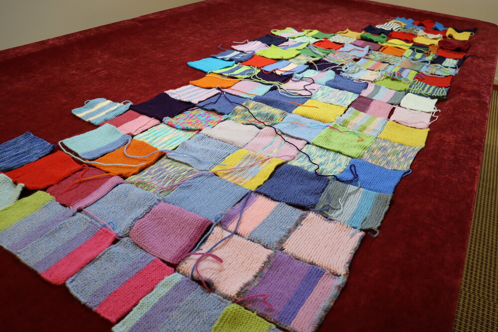The table is now filled with the bright and colorful peggy squares that the residents have knitted over the past six weeks—with enough squares to create four blankets and three rugs. Knitting for charities is not only a wonderful way to support a good cause, but it’s also a fantastic opportunity for residents to come together, share ideas, swap patterns, exchange yarns and buttons, and bond over life stories. Like many others, Jill had to relearn how to knit, but the effort has been well worth it: "It started off very quietly, but it’s become a bit competitive now, with everyone eager to see who can knit the most peggy squares", she says with a laugh.