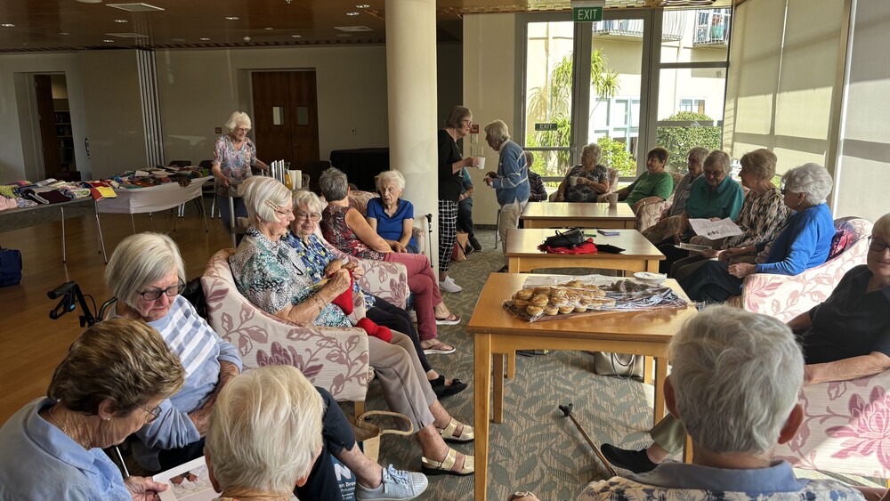 The knitting needles are also clicking away at full speed at Epsom Village, where residents recently celebrated a heartwarming milestone. The village’s knitting group marked the donation of 100 knee blankets to the Older People’s wards at Auckland Hospital with a lovely afternoon tea. The event was attended by Rodney Whitmore, Volunteer Coordinator from Patient Management Services.