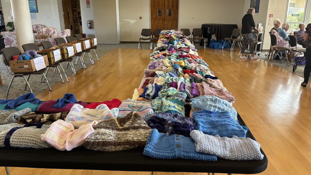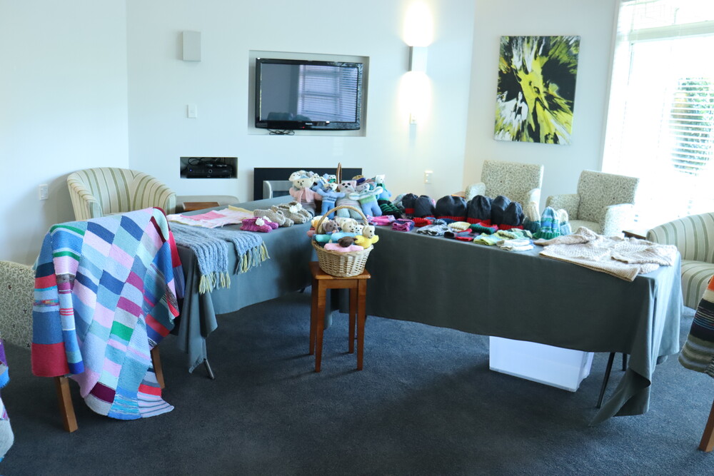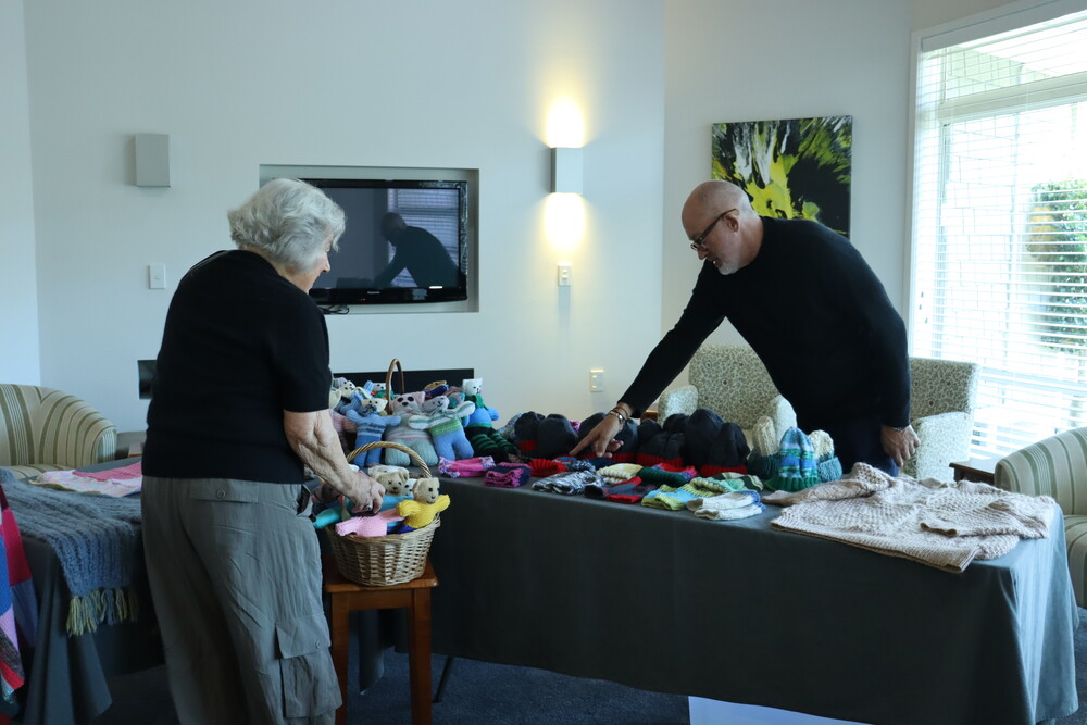 There was a joyful celebration recently as residents gathered for an afternoon tea to mark a year of knitting for children in need. Four trestle tables were piled high with beautiful hand-knitted and crocheted items, including jerseys, cardigans, beanies, shawls, slippers, blankets, and even toys. These heartfelt creations were donated to six nominated charities: Middlemore Foundation, South Auckland Plunket, Botany Babies, Anglican Christian Trust, Women’s Refuge, and Monte Cecilia.