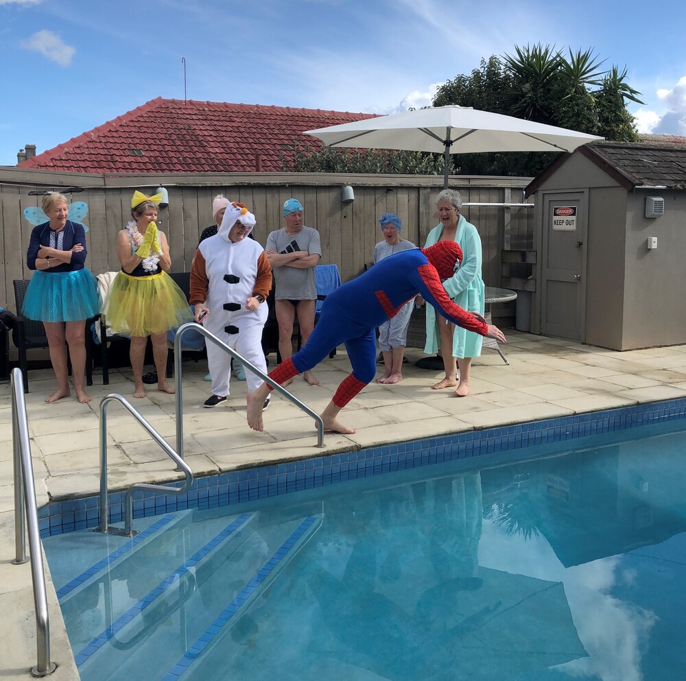 Diana is one of the most active, social and friendly members of our community, and she volunteers her help every time she can. At the beginning of September, the Village organized a “Take the Plunge” event to welcome spring, with some brave residents jumping into the pool which was only slightly heated.
